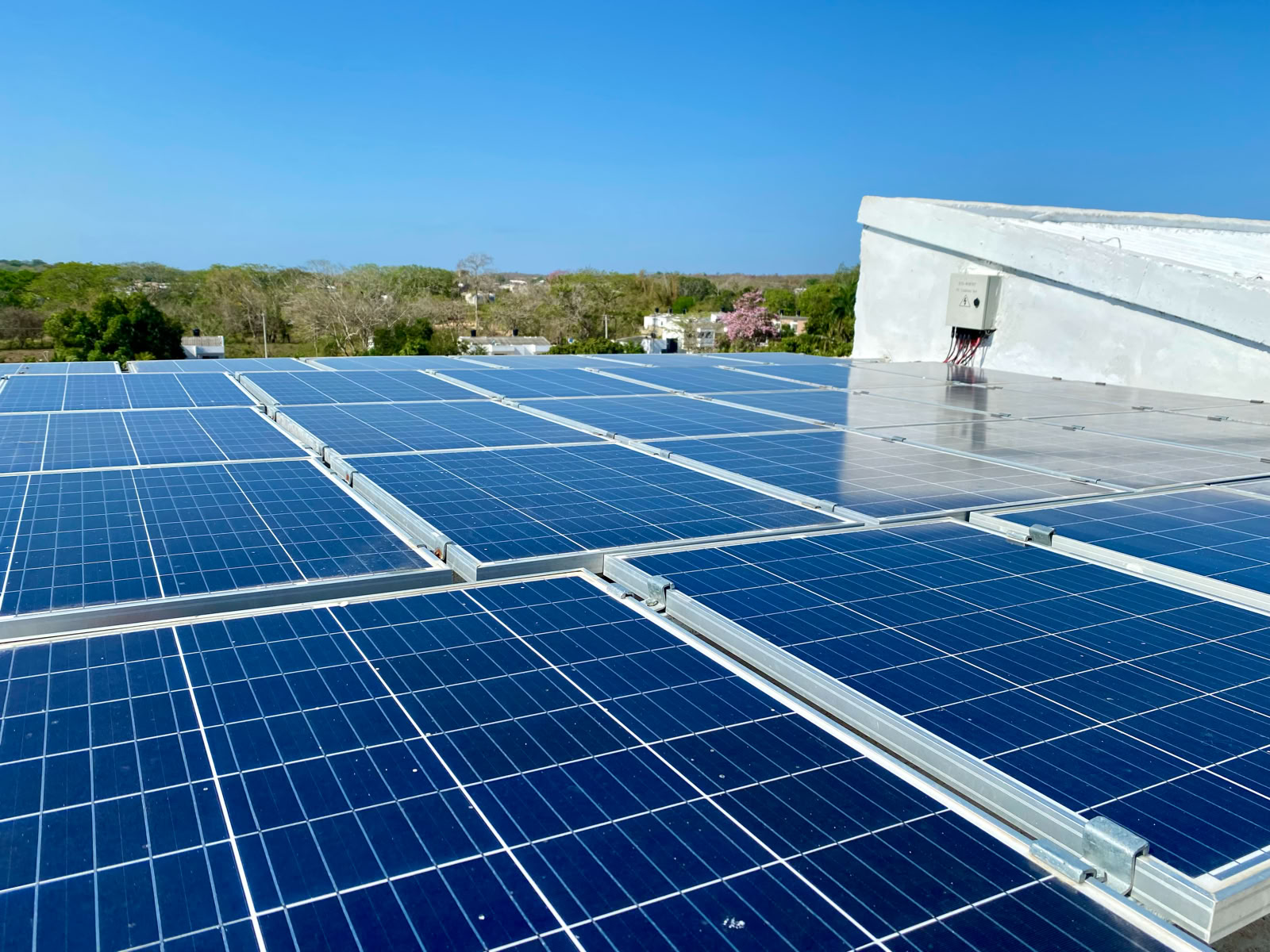 Electricidad: Los servidores están alimentados con paneles solares que dan 100% de energía renovable y un sistema de backup durante el dia. Una UPS de 3000W permite el backup de noche en caso de perdida de la energía. Un aire acondicionado se prende automáticamente durante las horas mas calientes del día. Este mismo se alimentad de los paneles solares también.